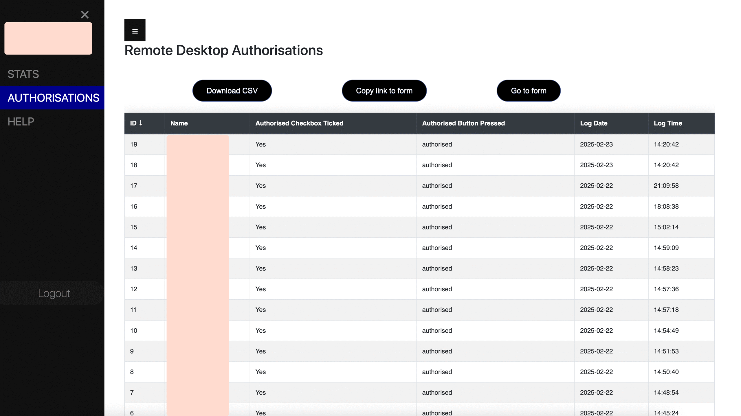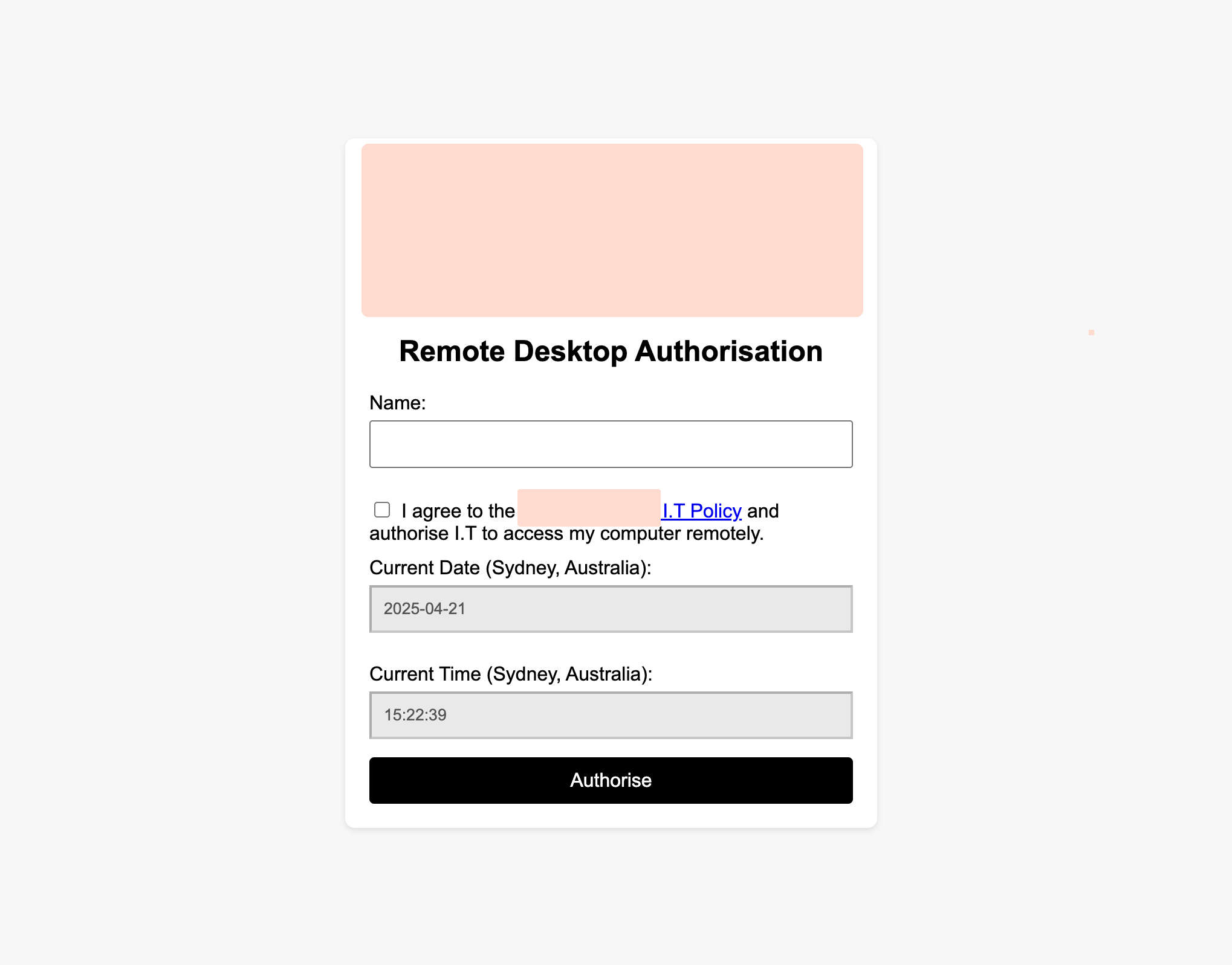 - Ability for users to provide authorisation for remote access via the toolbox (Shown here) , and then push to the authorisation page within this dashboard.