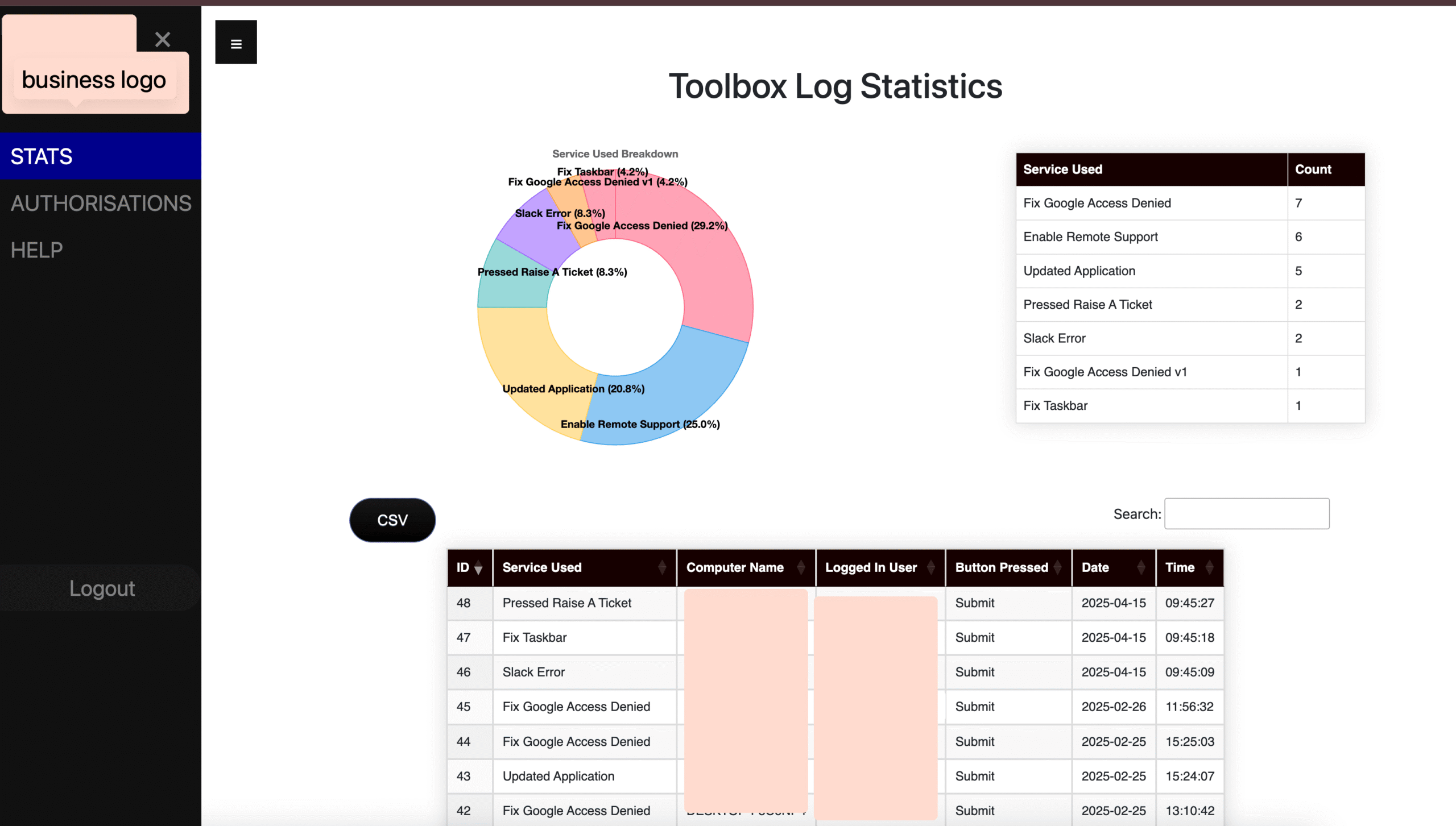 - Ability to view who has used the self service scripts (by computer name, logged in user, and time and date)